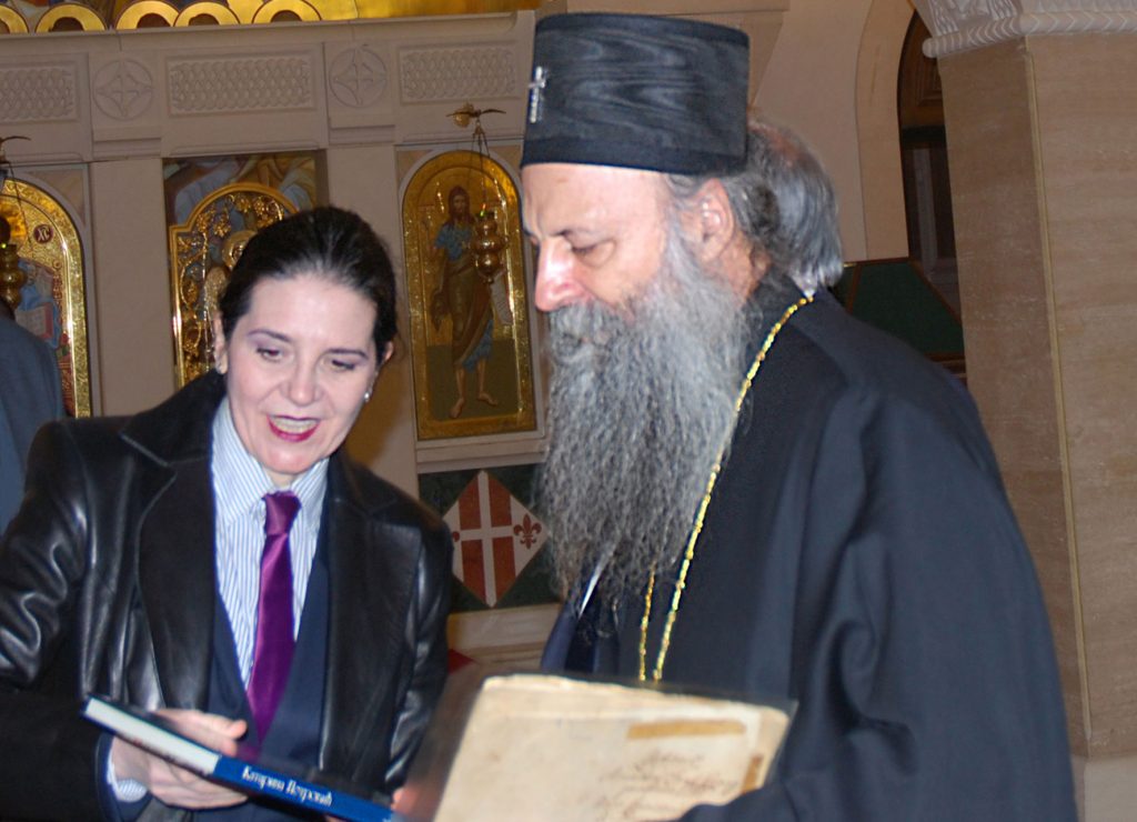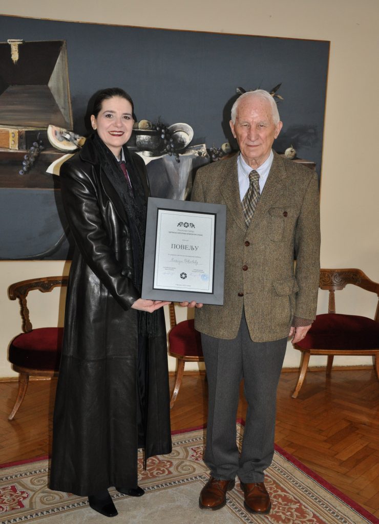 KATARINA PETROVIĆ, PREDSEDNIK UFAS-a, URUČUJE POVELJU AKADEMIKU MATIJI BEĆKOVIĆU