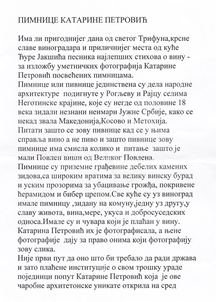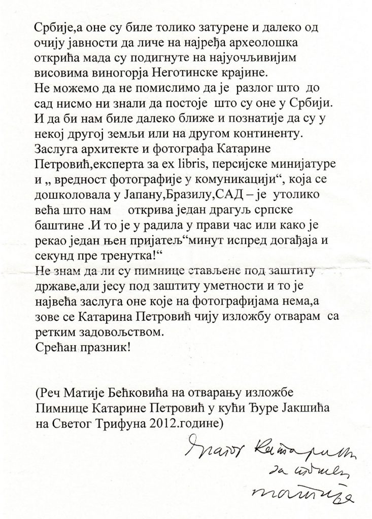 REČ MATIJE BEĆKOVIĆ NA OTVARANJU IZLOŽBE TRAGOVIMA SRBIJE PIMNICE